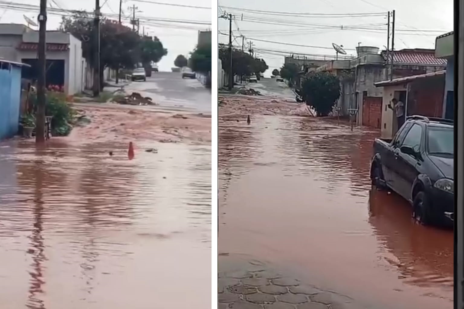 Volume de água inviabiliza o acesso de veículos e moradores na Rua Rio Pardo, no bairro Santa Luzia, em Passos, durante o temporal no último sábado / Foto: Reprodução Web / Redes Sociais