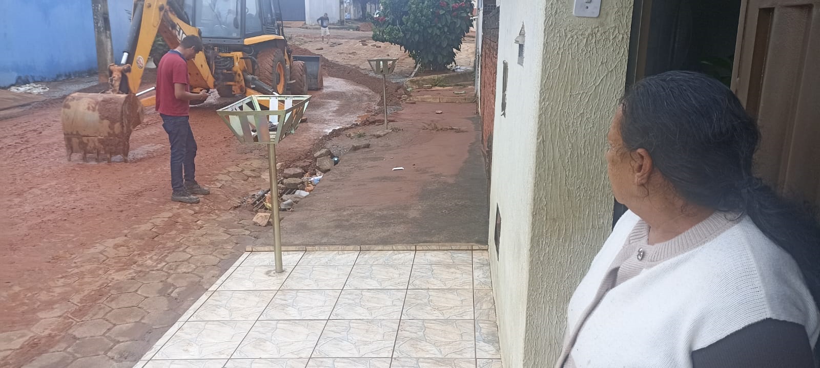 Dona Maria do Rosário, moradora da rua Rio Pardo, observa apreensiva o trabalho de limpeza realizado pela Prefeitura após novo alagamento, ocorrido menos de 30 dias depois de outro episódio que já havia causado prejuízos à sua casa/ Foto: Fernando Chaves