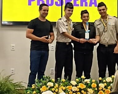 Alunos do CTPM de Passos recebem medalha de ouro e troféu pela conquista na Jornada de Foguetes, durante cerimônia de inauguração das novas instalações da unidade, com a presença de autoridades estaduais e municipais/ Foto: Arquivo FM