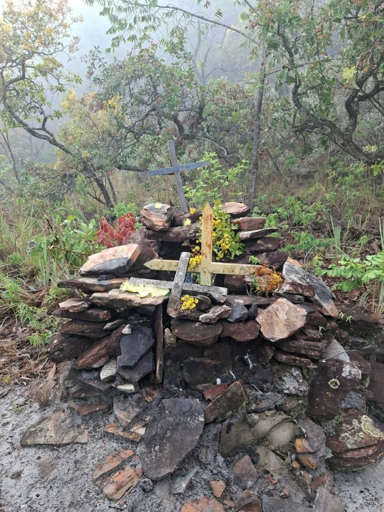 No alto de uma colina de pedra e mato fechado, na zona rural de Delfinópolis, um pequeno amontoado de rochas chama a atenção de quem se aventura pela trilha. Entre elas, cruzes simples de madeira, flores artificiais desbotadas, velas derretidas, bilhetes enrolados em plástico, fotografias de família. Ali perto, uma capelinha dedicada à Nossa Senhora Aparecida guarda o silêncio das rezas.